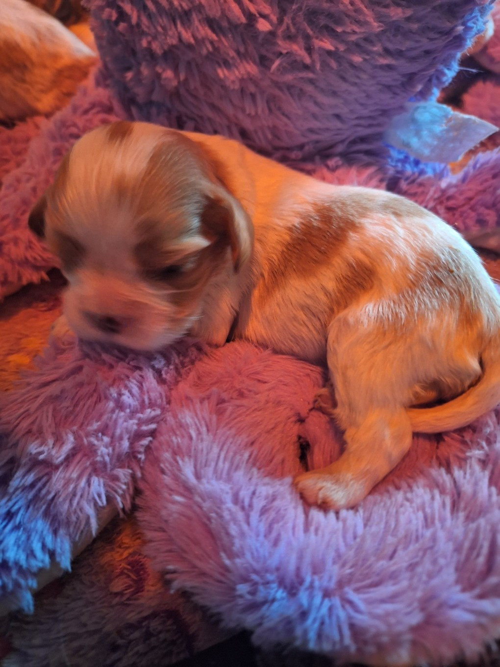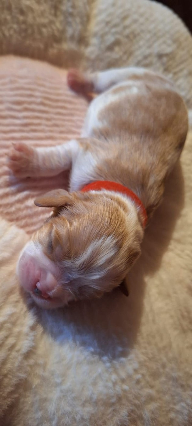 Pour sa deuxième portée, Tokyo a mis au monde 9 magnifiques bébés de couleur blenheim (7 filles et 2 garçons). Ils sont arrivés le 3 janvier dernier dans l'après-midi. Tout le monde va très bien, Tokyo est un AMOUR de maman cavalier, elle allie douceur et patience.